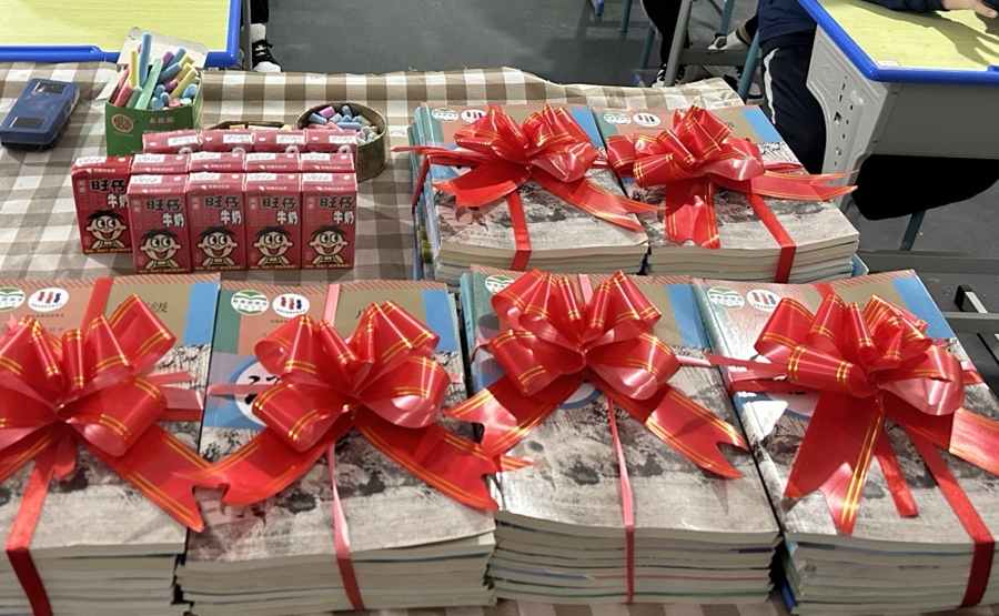 走进教室,文化部老师们贴心地为每位同学准备了一份开学旺仔礼物,寓意着新学期旺旺大吉,学业有成!旺仔牛奶的甜蜜,不仅温暖了我们的心房,更激发了我们对新学期的无限热爱与向往。老师们还将同学们的新书本精心包了起来,每一份书都承载着老师们的期望与祝福。